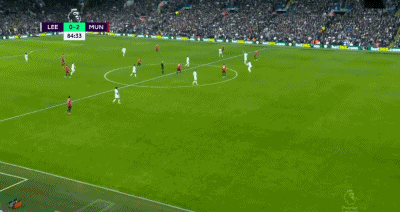 第85分钟,利兹联中场丢球曼联反击,韦格霍斯特直塞,加纳乔插上左肋12码处射门,球碰左立柱弹入网内,曼联2-0。