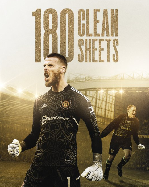 英超曼联3比0胜莱斯特城,德赫亚完成了代表曼联的第180次零封,追平了舒梅切尔的队史纪录。