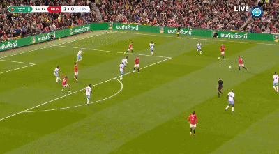 曼联阵容:24-奥纳纳、5-马奎尔、19-瓦拉内(60’35-埃文斯)、20-达洛特、4-阿姆拉巴特(60’44-戈尔)、7-芒特(45’2-林德洛夫)、18-卡塞米罗、46-汉尼拔-梅布里(70’34-范德贝克)、9-马夏尔(74’11-霍伊伦)、17-加纳乔、28-佩利斯特里