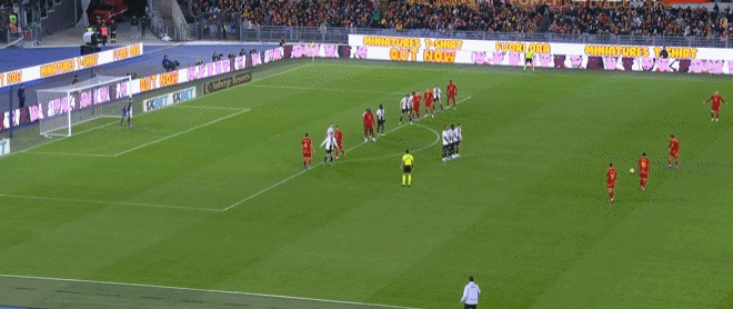 第20分钟,迪巴拉开出任意球,小曼奇尼头球破门。